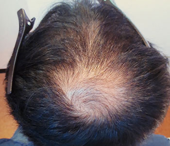 頭頂部が薄くなっております。このまま放っておくと悪化する一方なので、今の時点から当院で治療を始められたことは改善への近道でした。まだ透け感はあるものの、明らかに露出部分は少なくなっています。