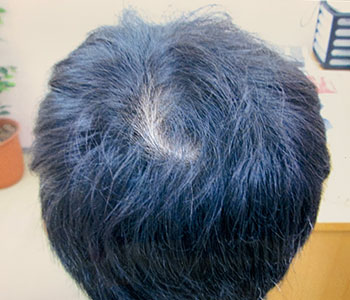 M字に後退、後頭部にかけて薄くなっています。当院の発毛プログラムにより12ヶ月後には、しっかりと発毛し見違えるほどの姿まで回復しました。当院は忙しい方でも最大限の効果が出せるよう、来院に配慮した治療を行なっております。忙しい方も、ぜひ一度当院へご相談ください。